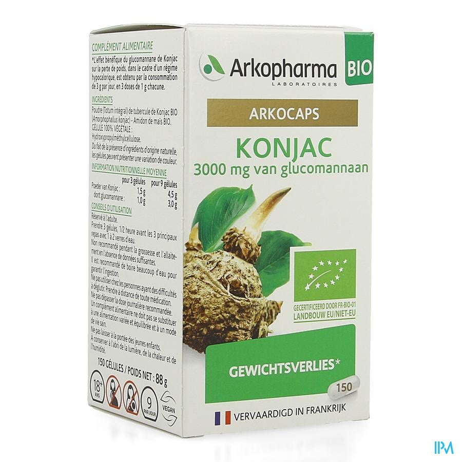 Arkogelules Konjac Bio Caps 150 Nf est un complément alimentaire disponible en pharmacie. Il ne peut se substituer à un mode de vie sain et à une alimentation variée et équilibrée. Ne prenez pas plus que la dose quotidienne recommandée indiquée sur l'emballage. Demandez conseil à votre pharmacien. Tenir hors de portée des enfants.