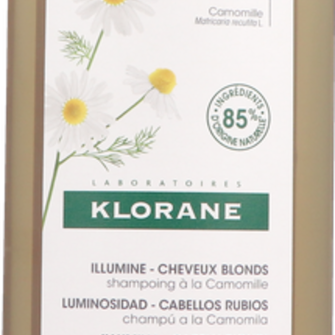Utilisable dès 3 ans, le Shampoing illuminateur à la Camomille de Klorane nettoie en douceur les cheveux et apporte des reflets dorés naturels aux cheveux blonds naturels, méchés ou colorés. Sa formule haute tolérance à 85 % d'ingrédients d'origi